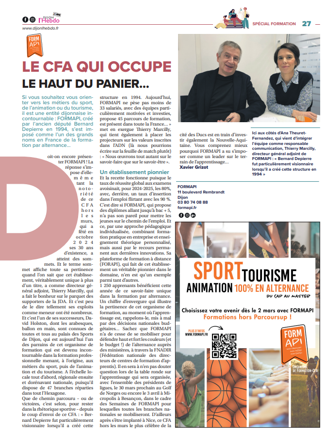FORMAPI CFA hors les murs fait l’objet d’un article dans le dernier numéro de Dijon l’Hebdo.
