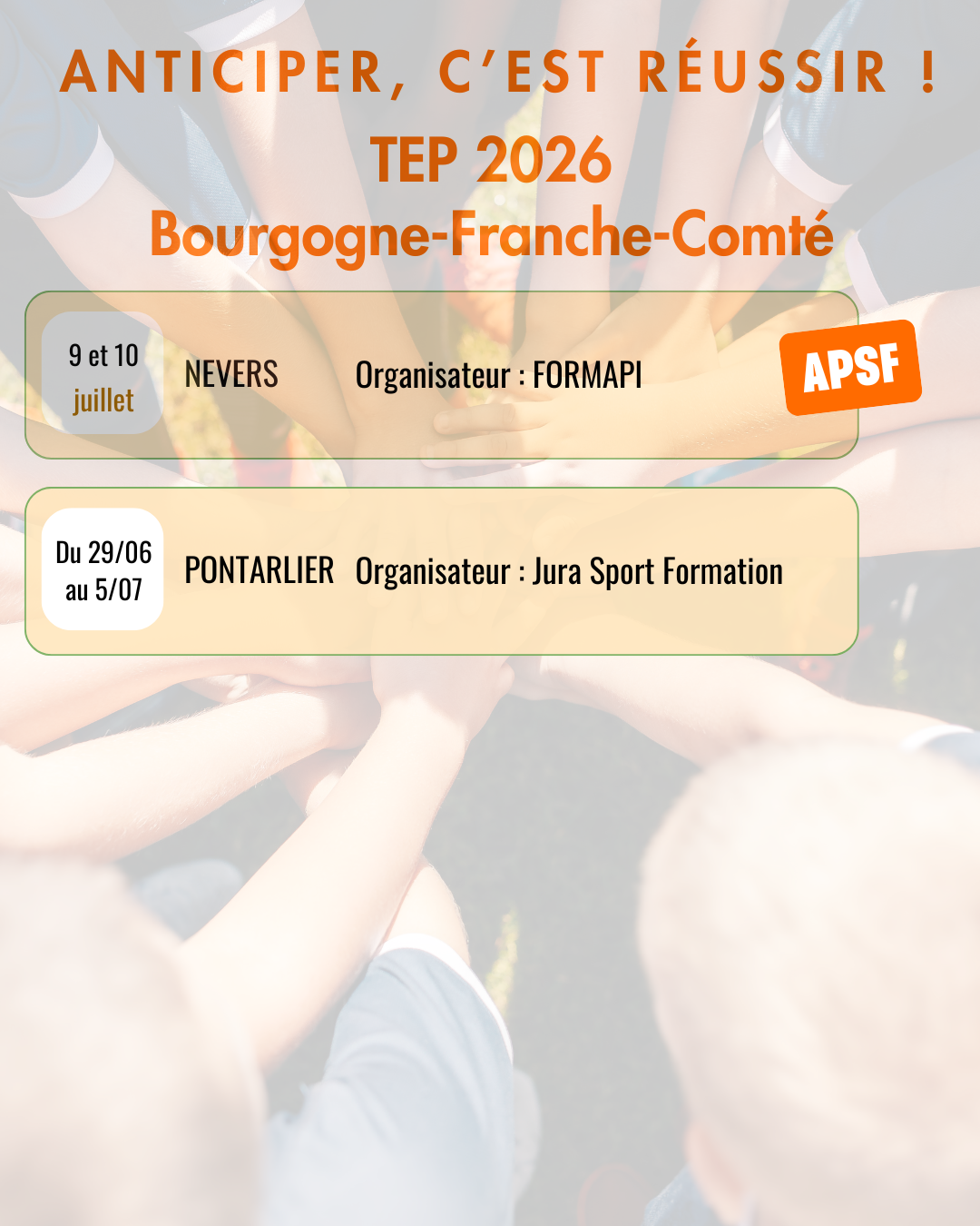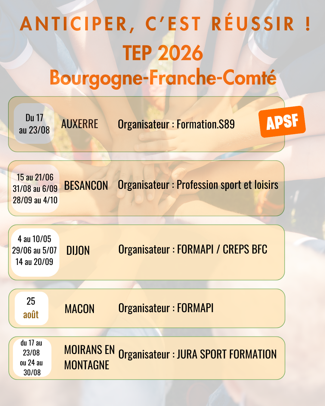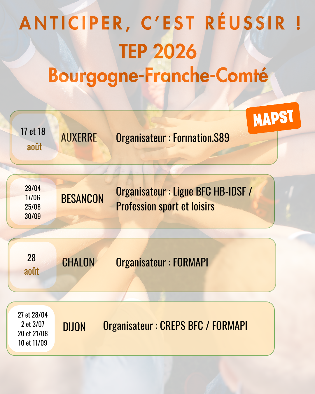 Retrouvez toutes les dates de TEPS par région